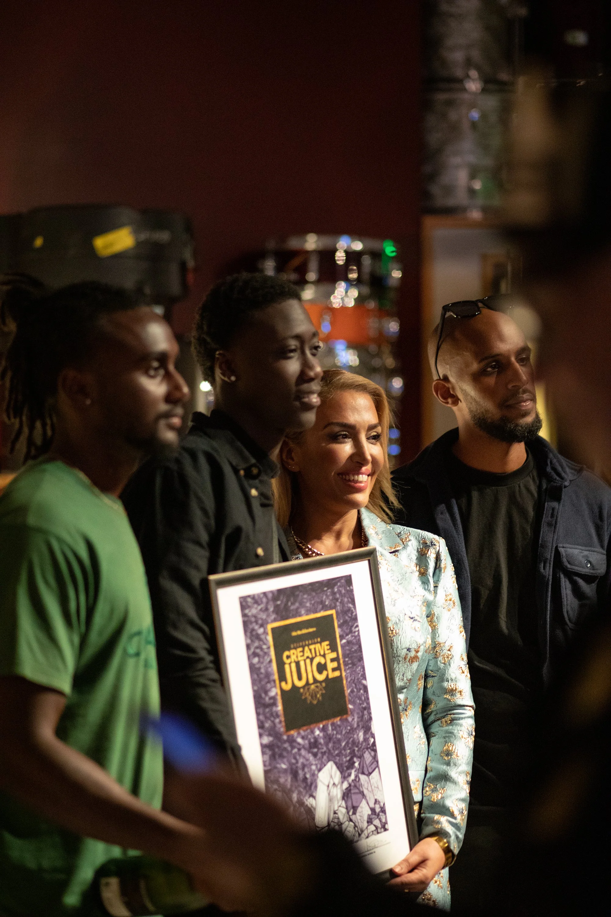 2020 år Creative Juice-stipendiat är artisten Modo Banja. Stipendieutdelningen hölls på Soundtrade Studios med en stor publik bestående av POC -kreatörer, entreprenörer och inspiratörer.